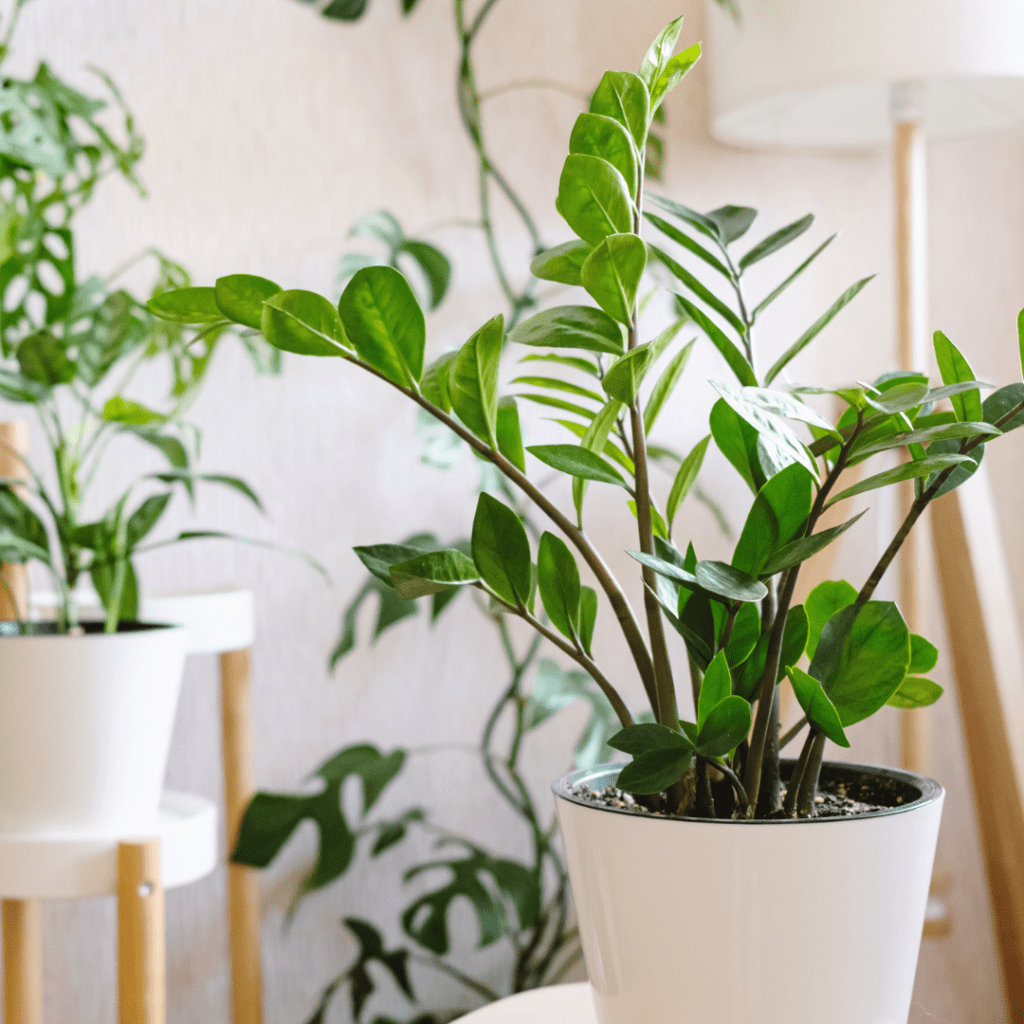 - ZZ Plant (Zamioculcas zamiifolia): With glossy, dark green leaves, ZZ plants are practically indestructible. They can survive in low-light environments and are extremely drought-tolerant, making them perfect for forgetful waterers. Plus, they’re excellent at removing toxins from the air.